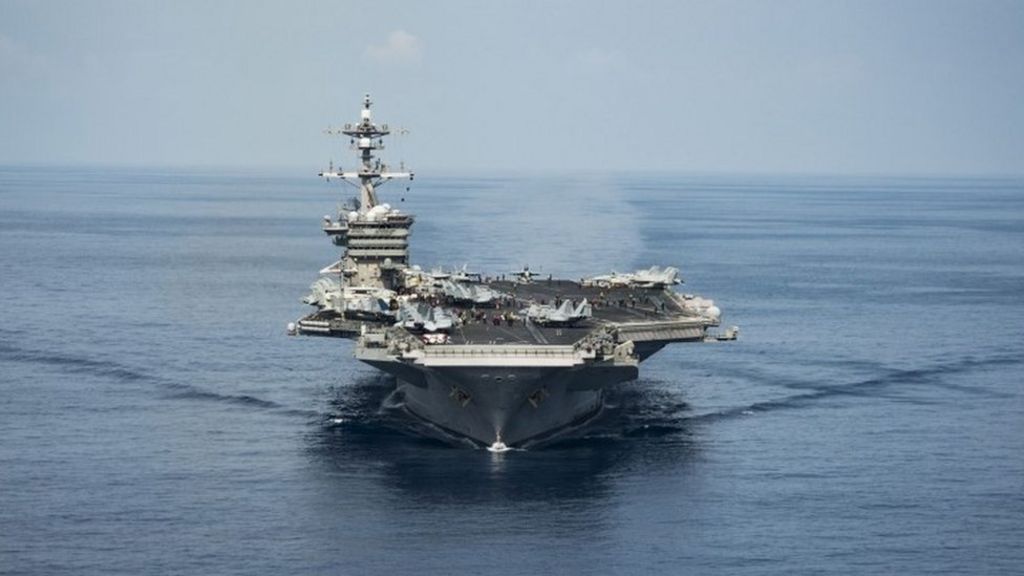 North Korea said on Sunday it was ready to sink a U.S. aircraft carrier steaming toward the Korean peninsula to demonstrate its military might, as two Japanese navy ships joined a U.S. carrier group for exercises in the western Pacific.