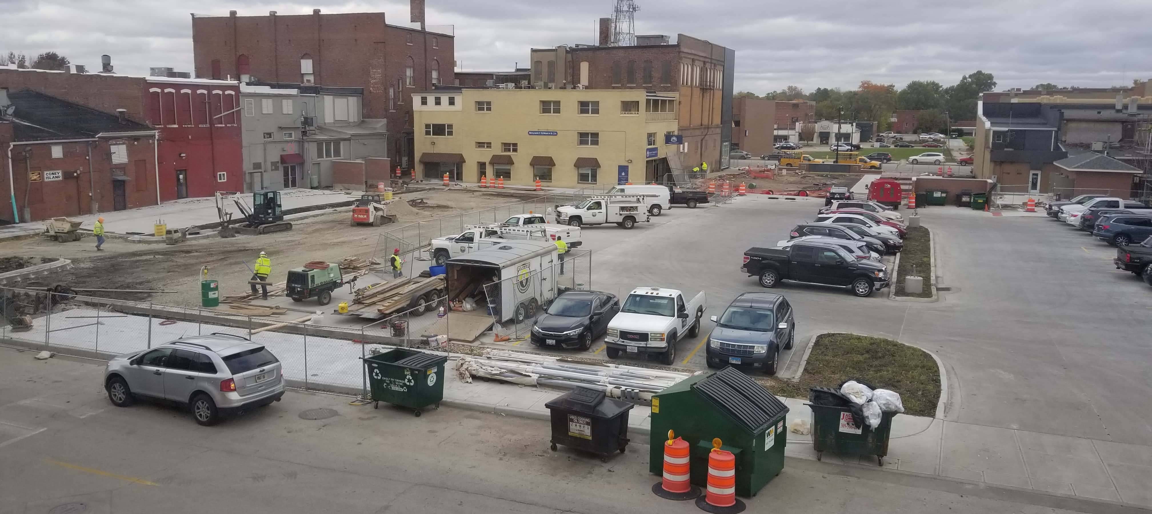 The downtown Park Plaza revitalization project is ongoing – but making progress. Rainy weather has hampered progress in the past two weeks, but Director of Planning and Public Works Wayne Carl says the west portion of the parking lot should be open in two weeks (the week of November 4th). Contractors are also working towards completion on what was the walls adjoining the former West Theater. “We expect to be finished with the walls of those adjoining buildings by the end of the week,” Carl said. “Then we’ll be filling in that area. So the contractors are moving along pretty well at this point. Hopefully, the weather will hold out and cooperate this week.”