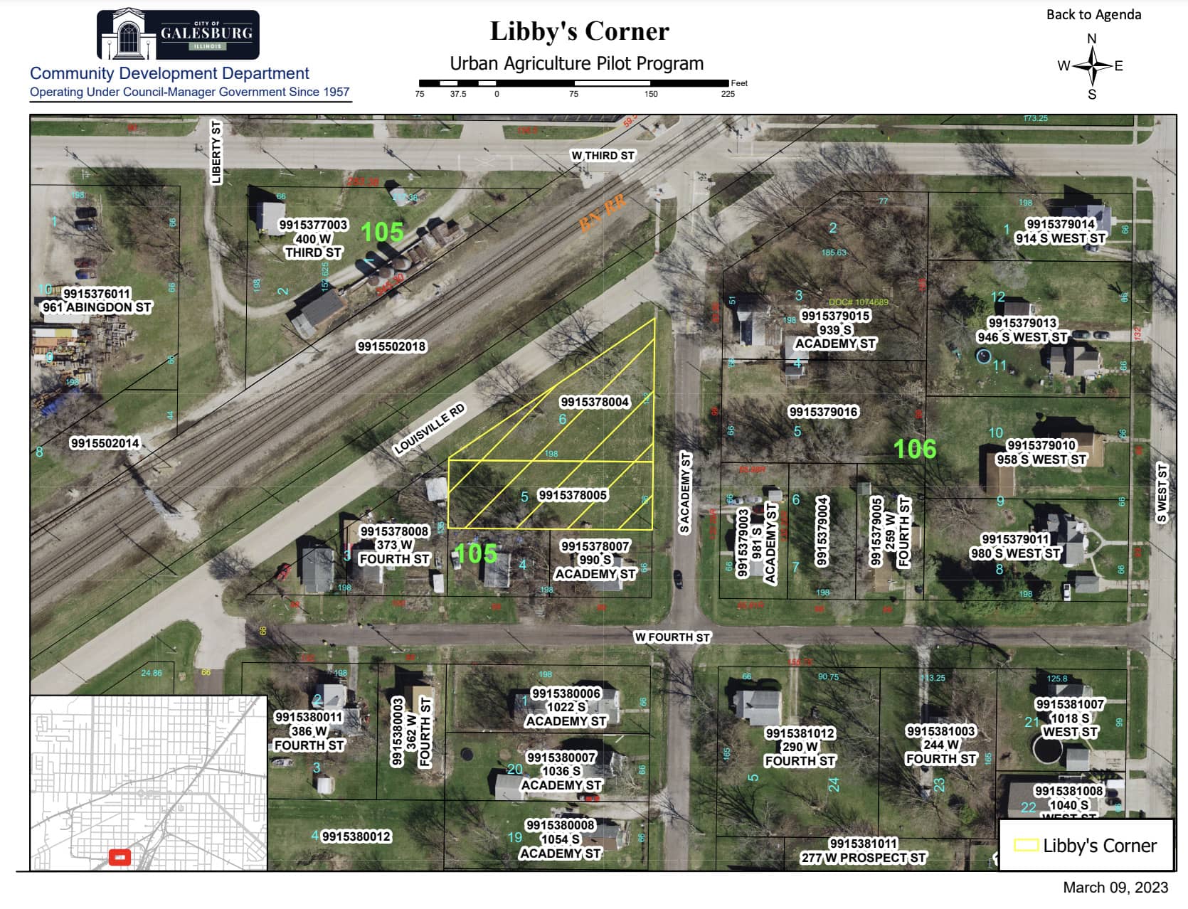 Urban agriculture was identified in the 2019 Comprehensive Plan as beneficial for Galesburg, particularly on the south side and in vacant lots.