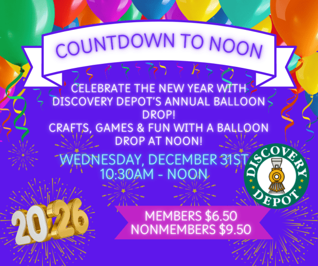 Discovery Depot 128 S Chambers St, GalesburgCelebrate the New Year with Discovery Depot's Annual Balloon Drop! Crafts, Games & Fun with a Balloon Drop at Noon! $9.50 nonmembers / $6.50 members
