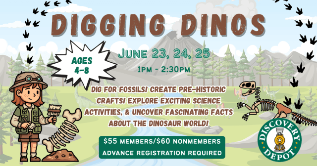 Discovery Depot 128 S Chambers St, GalesburgDig for Fossils, Create Pre-Historic Crafts, Explore Exciting Science Activities & Uncover Fascinating Facts about the Dinosaur World! This camp is $55 members and $60non-members.